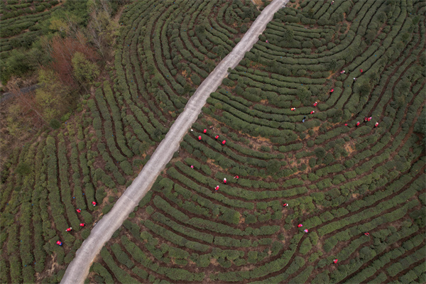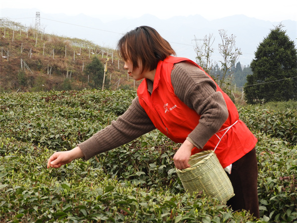 “在這裡採茶,能夠照顧老的,也能照顧小的,還是比較方便的,騎車來也近,我們就是這周圍的。”正在採茶的周驛社區村民王瑛説,她從早上七點開始採摘,按每斤50元的單價計算,每天可以賺100多元錢,每年從三月下旬到八九月份,她都可以在茶園做採茶工,像這樣在家門口務工,照顧家裏的同時增加收入,對她來説是個不錯的選擇。