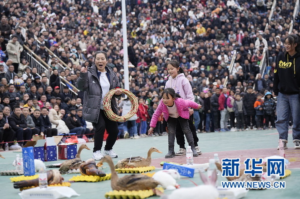 “我好高興,今天參加投籃,我投中了,得了一隻大豬腳。”提着獎品,村民小李笑得合不攏嘴。