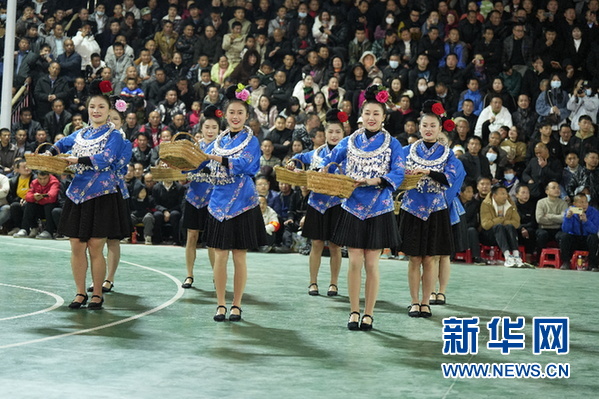 “籃球寶貝”苗族舞蹈。新華網發(龍軍攝)
