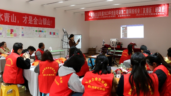 培訓現場,老師詳細介紹了電商市場、電商發展模式以及網絡直播帶貨的具體流程。採取理論加實踐的教學方式,講解視頻拍攝、剪輯、轉場基礎理論等內容,並指導學員親自操作,熟悉拍攝直播短視頻、賬號引流、直播展示、訂單處理、粉絲營銷等專業技巧,豐富參訓人員的電商創業知識。