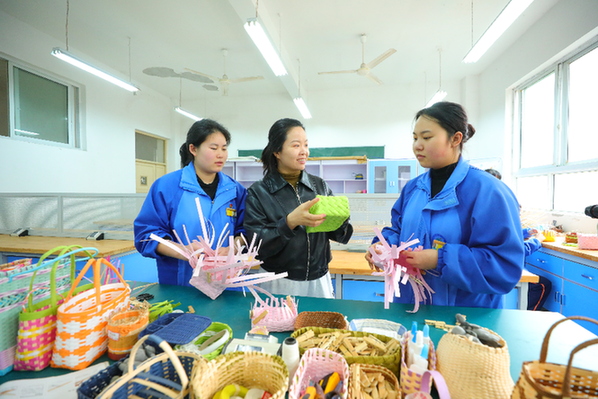 劍河縣第二中學學生正在社團活動上學習編織技巧
