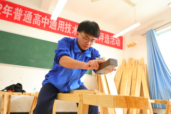 將一塊木料雕琢成一柄合格的魯班鎖,至少需要7道工序。反復地調試和打磨,考驗的不僅是腦力、眼裏,更是耐力和細心,這是高二年級的潘啟煒在上了木工課後的直觀感受,看著自己花了不少功夫製作完成的魯班鎖,潘啟煒不禁感慨:“以前只是聽説過,沒想到自己也能做出來,這個過程中不斷去嘗試、創新和突破,也讓我更加相信自己。”