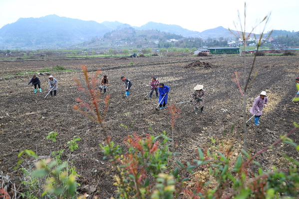 “前幾年經常在外面打工,現在可以在家門口掙錢了,來這裡種包谷,一天100塊錢,做完活路就回家接小娃、煮飯,覺得很好。”務工群眾覃想玉説。