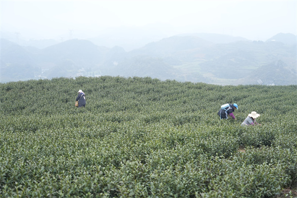 何官屯鎮組織委員、宣傳委員周彬告訴記者,從2019年開始,何官屯鎮引進公司在新華村、大壩村、大坪子村發展茶葉産業。為了在清明節前採制出一批上好的明前茶,近段時間,茶園每天都需要上百人才能滿足用工需求。“目前已進入盛産期,預計採茶時間是50余天,今年我們在貓貓洞社區還建成了茶葉加工廠,採了之後可以直接進行加工。”