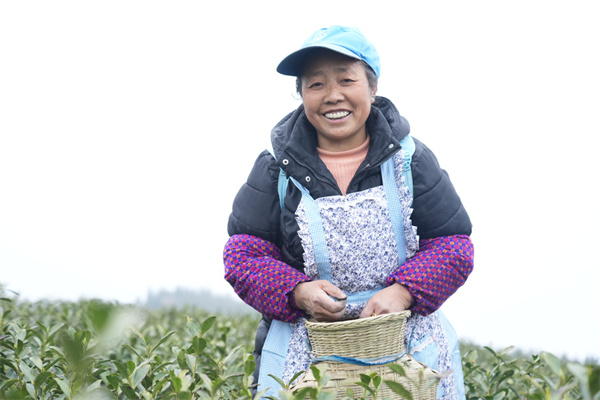 眼下正是春茶採摘的季節,在新華村的6000畝茶園裏,茶農們正忙着採摘明前茶。“我們早上八點就來採茶了,要到下午六點過才下班,一天能採四斤多,得100塊錢左右。”詹開英是茶園的採茶工,她説正值採茶季,和其他的夥伴一起來採茶,在茶山上唱歌聊天,能掙錢心情還特別愉快。