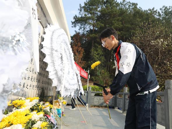 劍河縣第三中學學生彭濤説道:“用鮮花祭掃,既文明又環保,也能夠代表我們對革命烈士們的尊重與緬懷。”