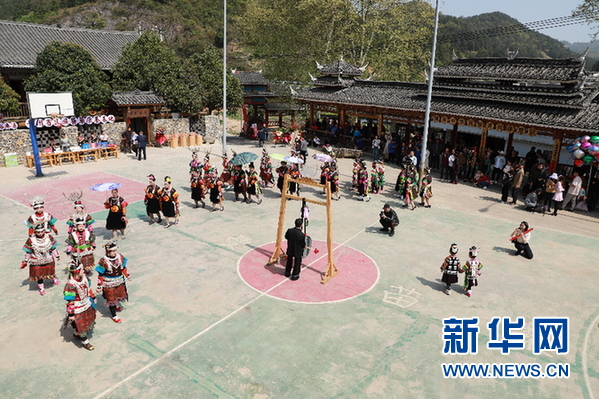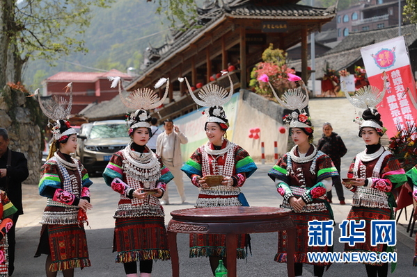 當天,曼洞村舉行了隆重的進寨儀式。在村寨路口設置苗家攔門酒卡,吹笙敬酒,載歌載舞……