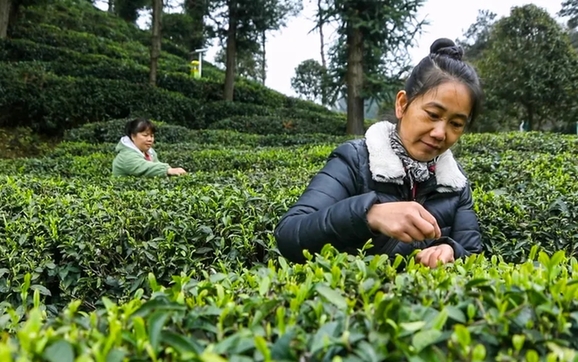 陽春四月天,採茶正當時。在都勻市26萬畝茶園裏,一片片春茶生機盎然,清新吐綠,當地茶農、茶企紛紛追趕春光搶農時,採摘鮮嫩的茶葉。