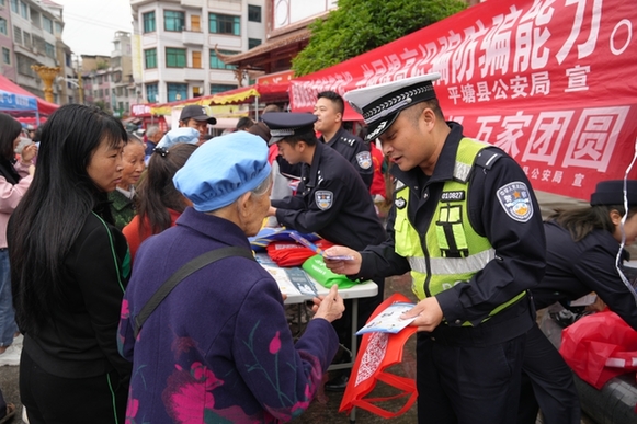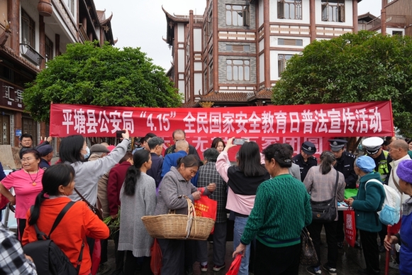 4月15日,貴州省平塘縣公安局組織多警種、社區志願者利用周六轄區趕集日到平塘縣金盆街道老農貿市場開展“4·15全民國家安全教育日”普法宣傳活動。