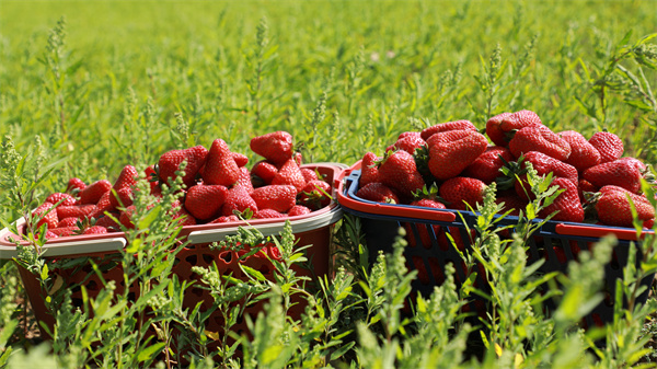 4月17日,貴州省大方縣石桅村草莓基地剛採摘的新鮮草莓。周訓貴 攝