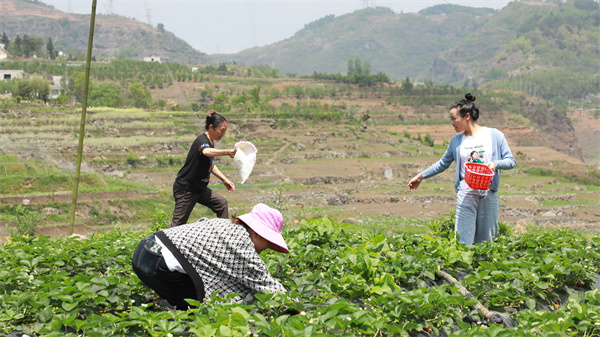 4月17日,位於貴州省大方縣石桅村的露天草莓種植基地,連片草莓成熟待摘,基地裏人流如織,不少市民帶上家人或朋友,着實體驗了一把田園採摘的樂趣。