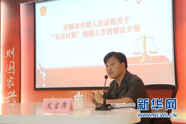 安順中院立案一庭庭長陳優海介紹“無訟村居”創建情況。新華網 周遠鋼 攝
