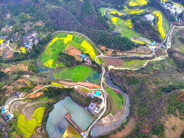 岑鞏縣思旸鎮盤街村美麗鄉村鳥瞰圖。(黃鵠 攝)