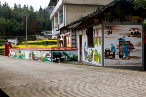 岑鞏縣思旸鎮盤街村“記住鄉愁”手繪墻。(黃鵠 攝)