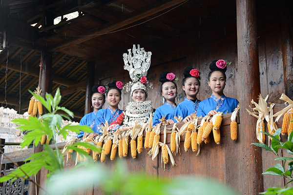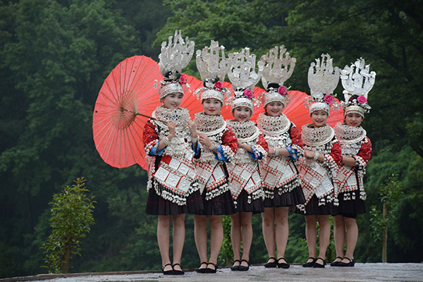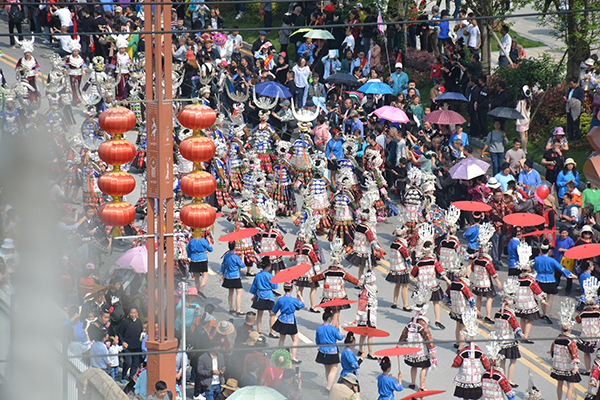 千年“情人谷”裏的苗族姊妹節盛裝游演。張強 攝