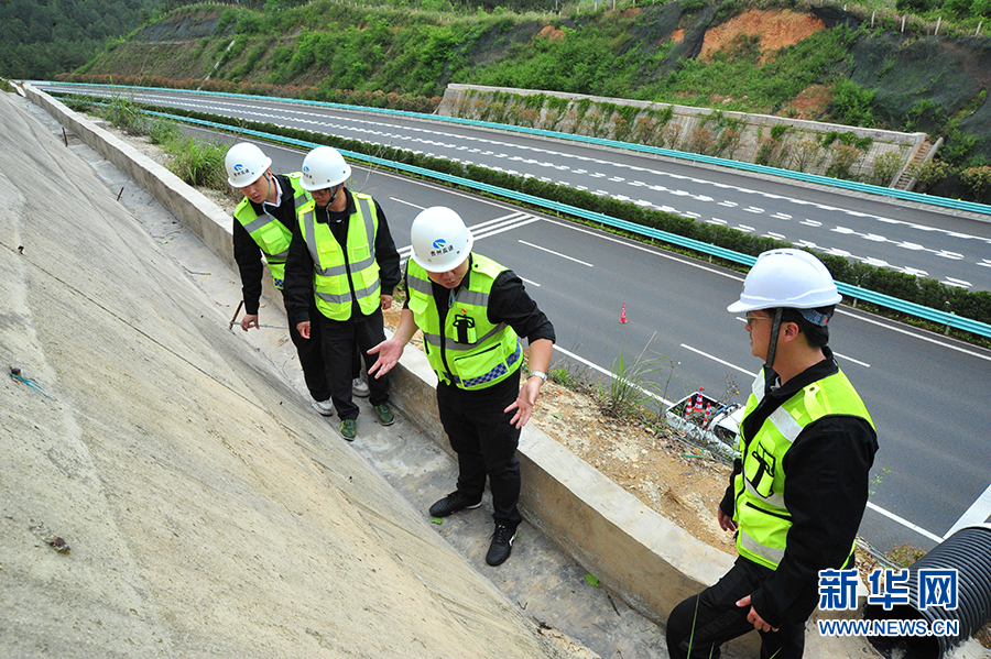 4月30日,道路綜合管理站的工作人員在雲霧大橋上檢查。新華網 盧志佳 攝