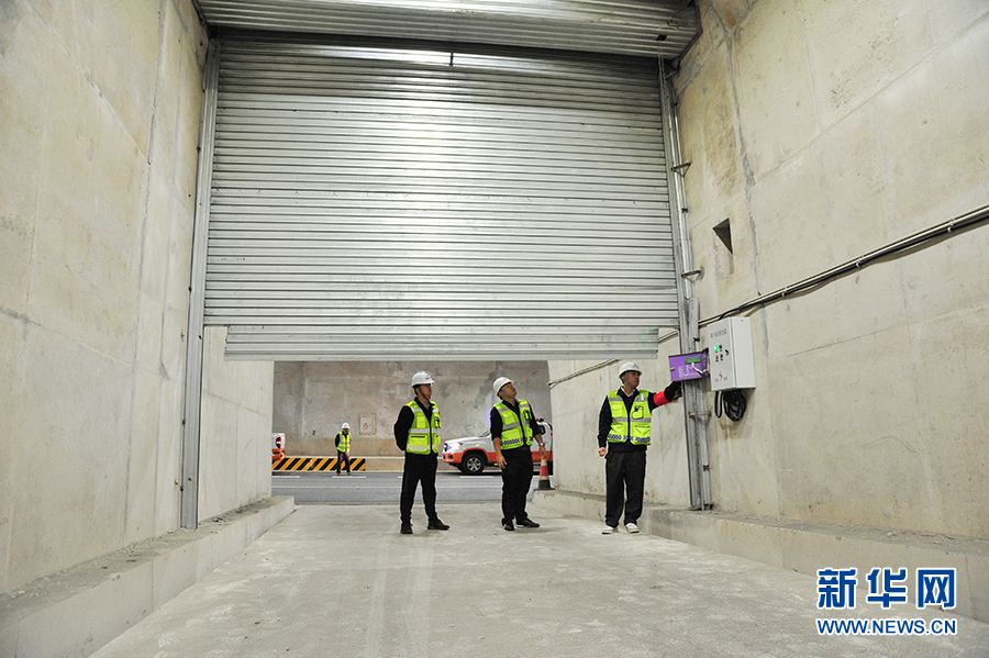 4月30日,工作人員在梨子關隧道內檢查車行橫洞內的卷簾門是否能正常開啟。新華網 盧志佳 攝