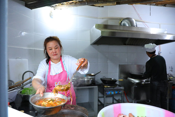 劍河縣仰阿莎街道川洞村村民在農家樂裏忙碌。(吳昌連 攝)