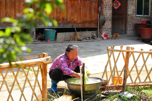 劍河縣太擁鎮柳落村村民在清洗蔬菜。(吳昌連 攝)