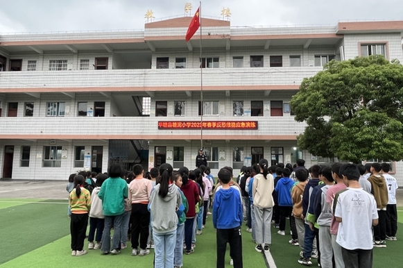 5月12日,平塘縣公安局塘邊派出所到塘邊鎮塘泥小學開展反恐防暴應急處置演練。