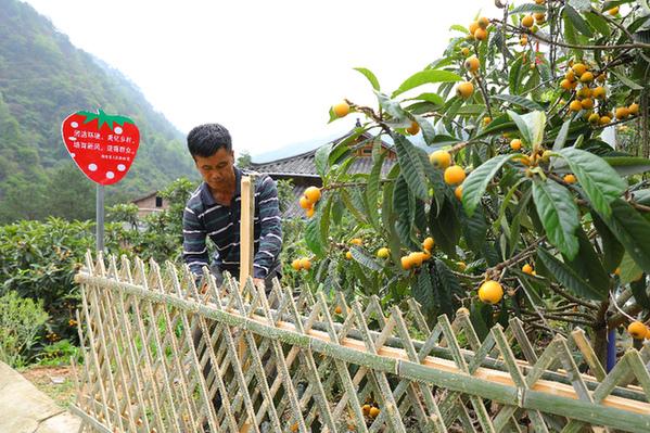 吳成蘭的家住在鎮江村鐮刀灣的一處轉角,二十年前,她便開始在家門口的空地打造庭院,種下枇杷樹和小番茄。如今,十余棵枇杷樹亭亭如蓋,一到夏季,清水江畔的習習微風吹來,黃了枇杷,富了農家。