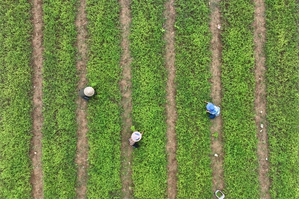 岑鞏縣天馬鎮雷公田村,村民在選高粱秧苗。(萬再祥 攝)