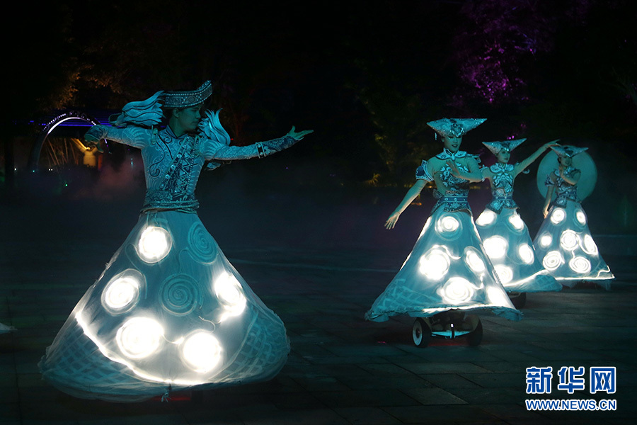 5月19日,“夜游黃果樹”項目的節目表演。新華網 周遠鋼 攝