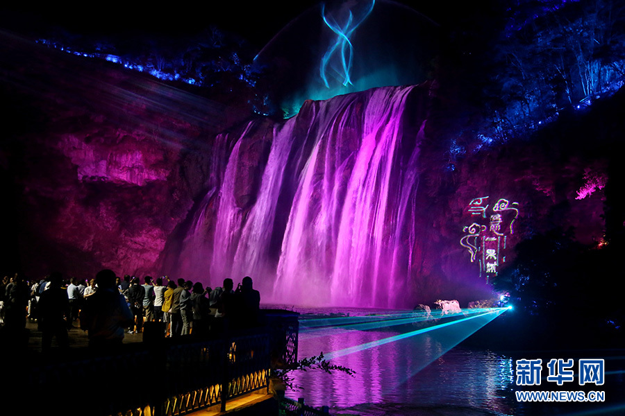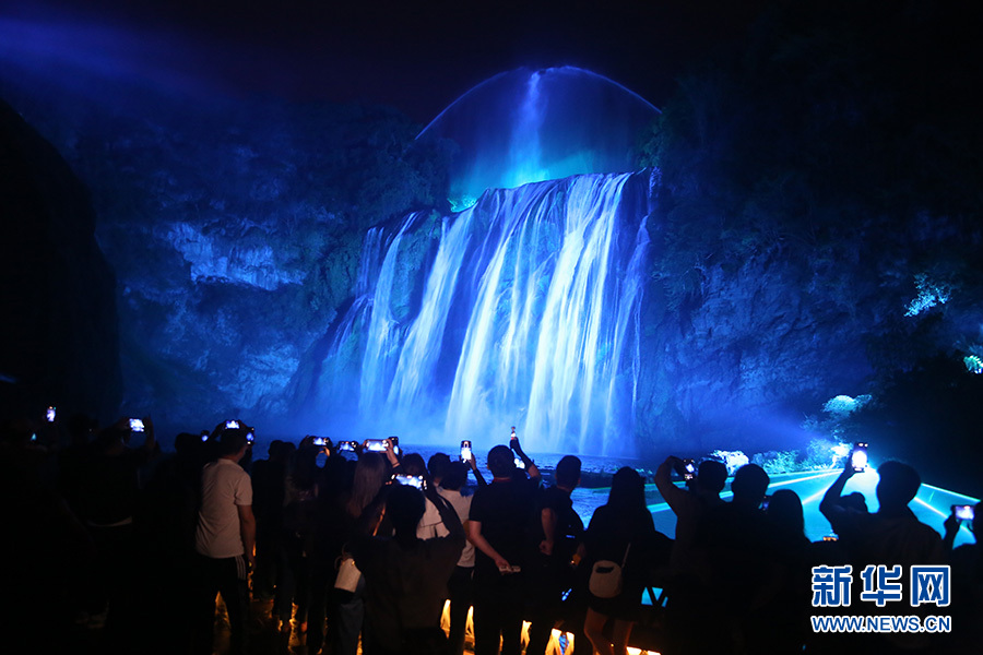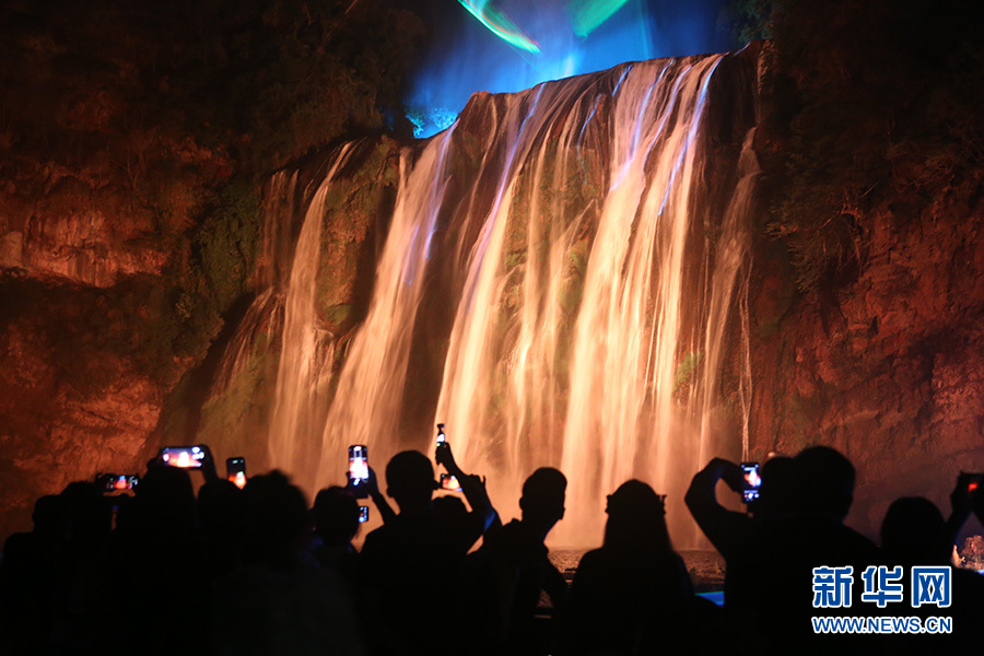 5月19日,游客觀看黃果樹瀑布夜景。新華網 周遠鋼 攝
