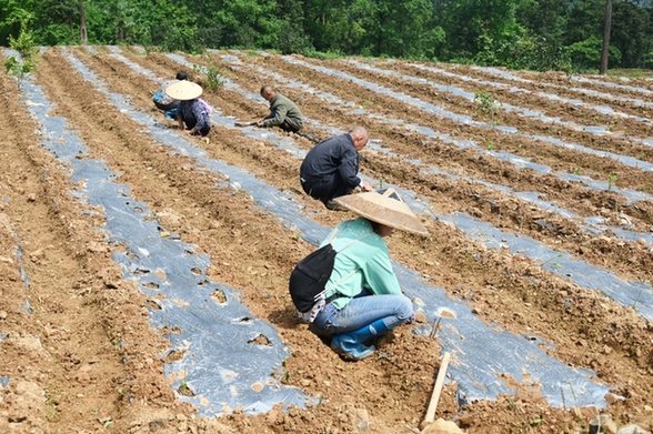 小滿時節,在龍田鎮龍溪村中藥材虎杖種植基地,30多名村民正在地裏忙着移栽虎杖幼苗。該基地是龍田鎮今年新實施的中藥材産業項目,在完成前期整地、蓋膜等工作後,眼下迎來了第一批幼苗移栽。