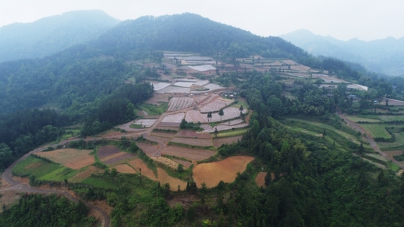 岑鞏縣龍田鎮龍溪村虎杖基地,村民在移栽虎杖苗。(吳念 攝)