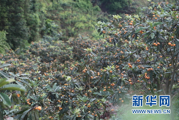 新華網貴陽5月23日電 五月的貴州省&江縣,漫山遍野的枇杷林濃密的綠葉間綴滿“黃金果”。剝開薄薄的果皮,咬一口,汁多肉軟,香氣四溢。