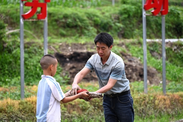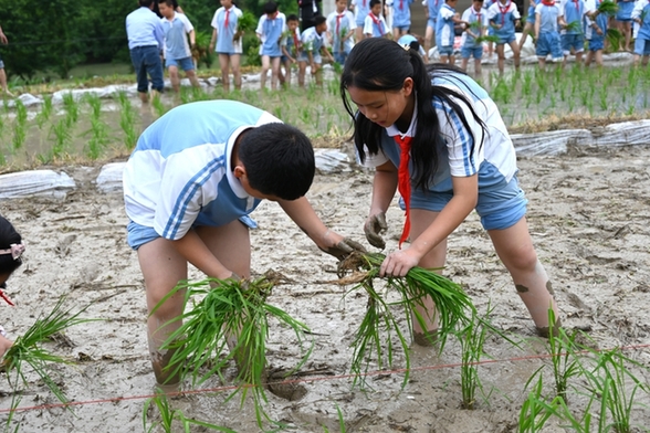 “水稻種植是岑鞏縣的主導産業,也是七千年傳統農耕文化的重要組成部分。”龍田鎮中心小學黨支部書記、校長黃勇説,為推動“雙減”政策與農耕文化結合,龍田鎮中心小學與龍田鎮關工委利用勞動教育實踐活動,將七千年的傳統農耕文化與基礎教育拓展性課程有機銜接,讓生産性勞動教育體驗與學校育人精神內核和當前的“雙減”政策高度統一,“通過實踐讓學生從繁重的課業負擔和分數的壓力中解放出來,從知識到實踐,從課本到生活,在勞動中成長”。