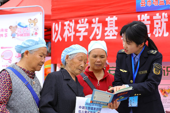 活動現場,工作人員為群眾進行科普知識宣傳。(楊家孟 攝)