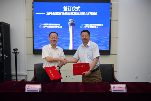 5月30日,貴州空管分局與西藏空管中心在貴陽開展了合作交流會並簽訂支持西藏空管高質量發展深度合作協議。本着進一步深化雙方友好合作,實現優勢互補、合作共贏,共同推動空管事業高質量發展。西藏空管中心副主任尼瑪旺堆,貴州空管分局局長張志東、副局長陽康、郭飛,以及雙方各部門領導出席簽訂儀式。