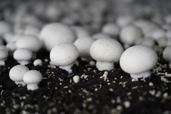 貴州泓華農業科技有限公司雙孢菇生産基地雙孢菇長勢喜人。(周飛 攝)
