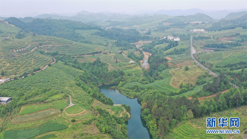 圖為6月9日航拍的麻江縣宣威鎮藍夢谷生態藍莓園一景。新華網 周遠鋼 攝