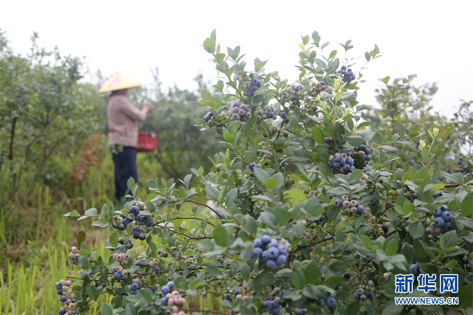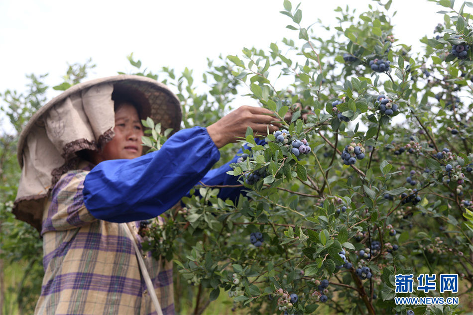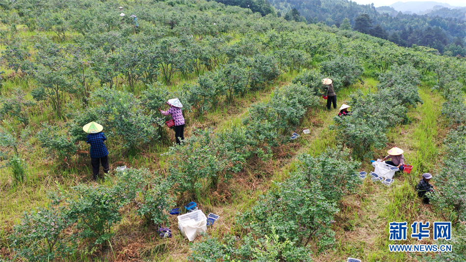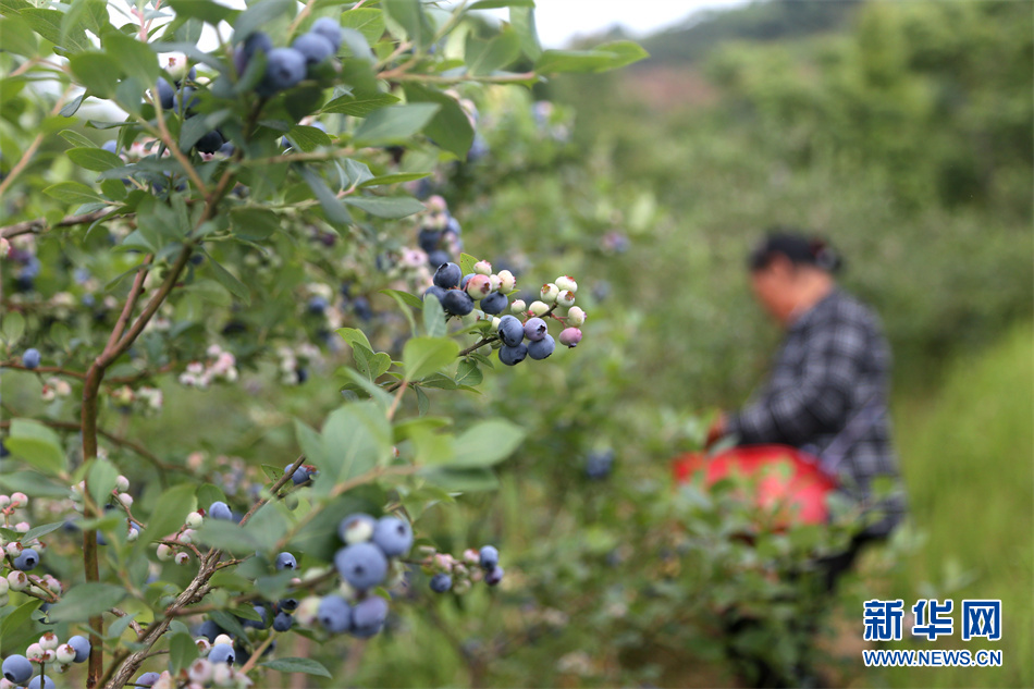 6月9日,村民在藍夢谷生態藍莓園採摘藍莓。新華網 周遠鋼 攝