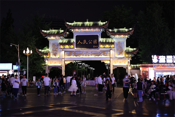 夜幕降臨,人民公園市集的特色連廊便會亮起,創意燈飾畫、各類特色美食店,裸眼3D大屏,夜間亮化浪漫氛圍感鋪滿,人來人往,逛吃不停,成為一處靚麗的風景線。