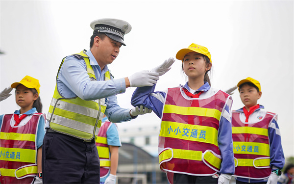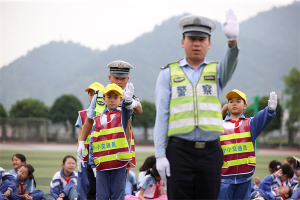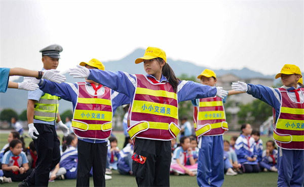 近日,貴州省黔東南苗族侗族自治州丹寨縣城關第一小學舉行“今天我當交通員”主題活動,通過校園交通安全教育培訓選拔出來的十多名“小小交通員”在交警隊員的指導下,現場學習交通指揮手勢,體驗道路指揮,學當“小交警”,孩子們在實踐中增長了交通安全和文明出行知識,養成文明出行的良好習慣,提升學生的安全防範意識。(黃曉海)