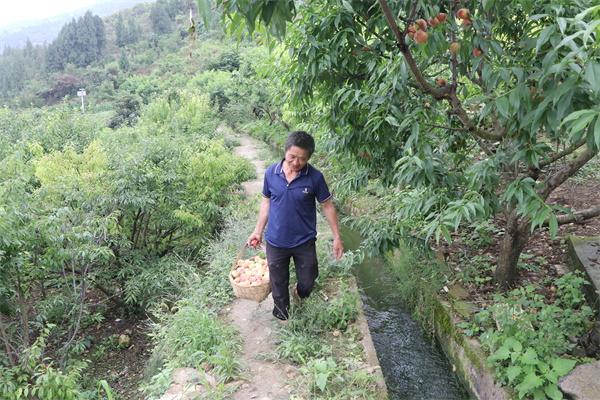 在七星關區生機鎮,鎮江大溝的涓涓清流沿着水渠流入農田裏,漫山的桃子李子在水流的澆灌下長勢喜人,煥發勃勃生機。