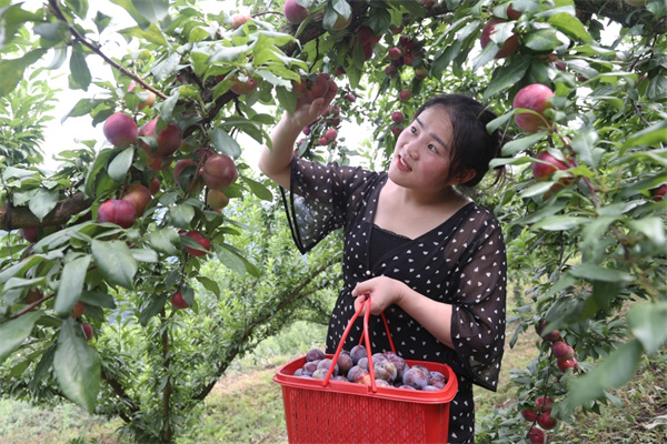 “喜歡哪顆哪顆,喜歡哪個品種就摘哪個品種,真正實現了水果自由。”游客柳新蓮介紹,“五子園”産業基地的李子品種多、個頭大、肉厚實,酸甜適度,味道爽口,來這採摘既滿足了味蕾,也愉悅了心情。