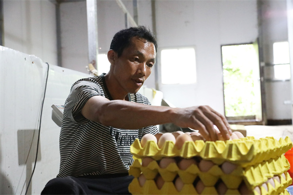 “目前,基地存欄有兩萬隻雞左右,在産蛋雞一天大概可産九千多枚蛋,一年預計收入一百多萬元,雞蛋主要銷往廣東、湖南等地,有穩定的客戶群體和銷售渠道。”基地負責人彭代寧介紹説。