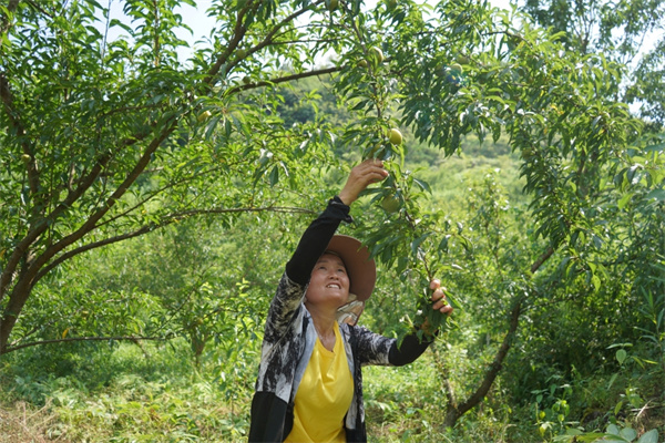 “平均每天有四五十人來果園採摘,按照15元1斤的價格,一天要賣3000元左右。”李子基地負責人吳春蘭介紹,良好的管護水平,是決定果樹産量和果實品質的關鍵因素。果園通過雇請工人搶抓時令實施綠色防控管護,採用人工除草、人工疏果、施農家肥、生物防治等方式,有效保障了果品的産量和品質,促進了生態休閒“採摘游”在果園持續升溫,帶動果品身價倍增。今年,150畝蜂糖李預計産量1萬餘斤,收入10多萬元。
