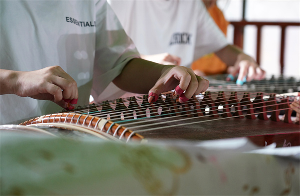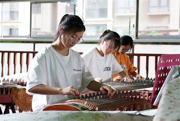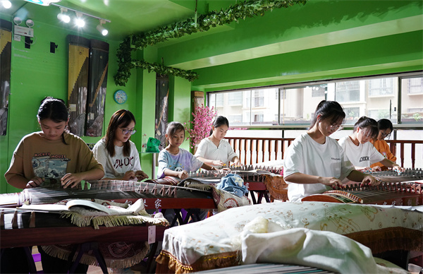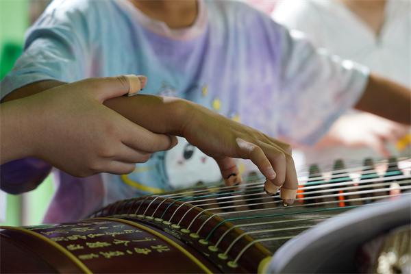 7月18日,學生在貴州省黔東南苗族侗族自治州丹寨縣一家音樂教育中心學習古箏。