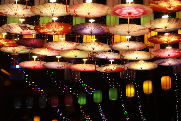 1000多盞彩色燈籠和油紙傘組成的綵燈長廊,美輪美奐。