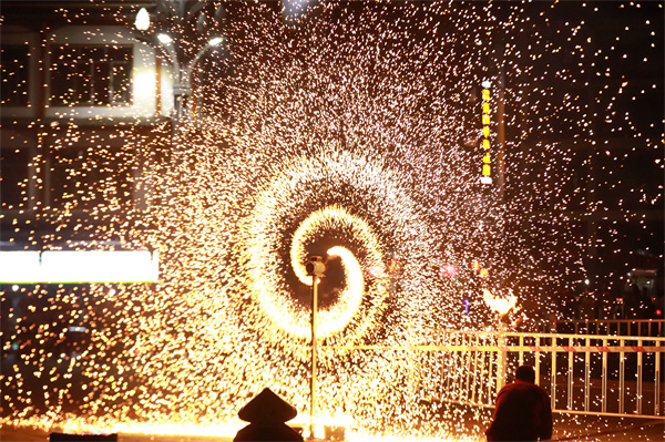 匠人正在表演“打鐵花”。