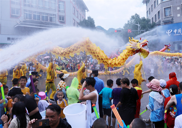 2022年劍河縣仰阿莎文化節上人們參加水龍狂歡節。 (楊家孟 攝)