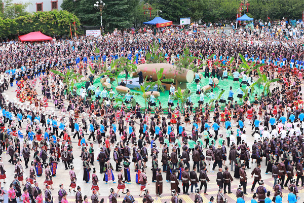 當天,在這場跨越了600年光陰的古老傳唱中,萬人齊起步伐、和着鼓點,跳起了激越、豪邁、歡快的水鼓舞,一時間,銀飾奏響銀鈴曲,舞步伴着歡鬧聲,仿佛置身於歡樂的海洋,熱鬧的氛圍吸引了八方游客。