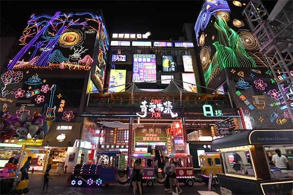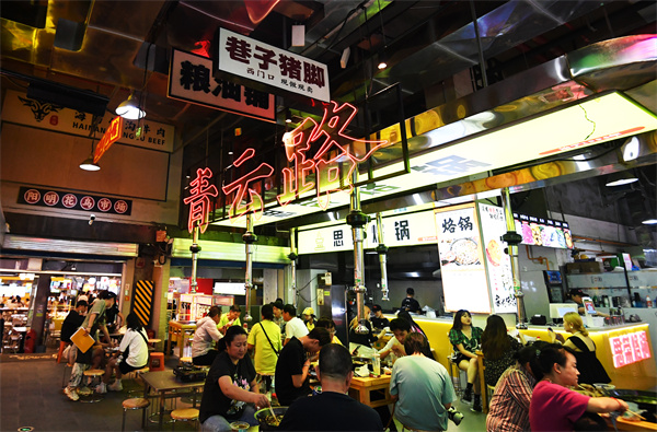 鄧一:青雲市集重新打造之後,原有的市場它不是抹滅了,實際上在保留、加強了原有的煙火氣的前提下,我們又提升了像排煙、視覺、燈光等,最重要的是我們把以前大概是100多家的傳統夜市,變成了今天含小吃70余家、文創70余家,還有各種場館、酒吧20余家,總共5萬平方米,210個商戶的一個夜經濟綜合體。我認為它第一滿足了就業,第二讓整個城市已經延續了二十多年的一個老夜市又煥發新的生機。所以當時對這個項目的定調我們叫“老貴陽 新調調”,“三不學”,不學倣古做舊,不學少數民族,不學商場的一體化規劃。你在青雲市集看到更多的就是五光十色的燈光,各種文創的小手辦,你在一個吃小吃的地方還可以打籃球,甚至去就是擼貓等等,我覺得這個是一個比較創新的點。