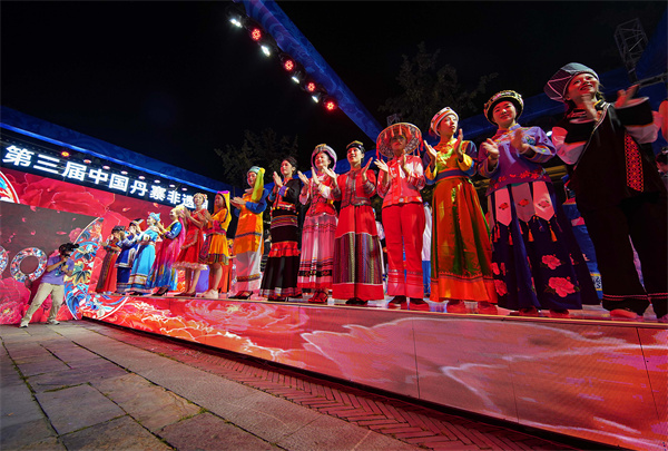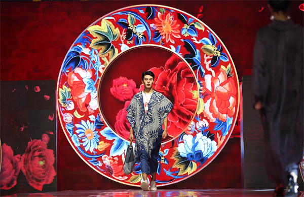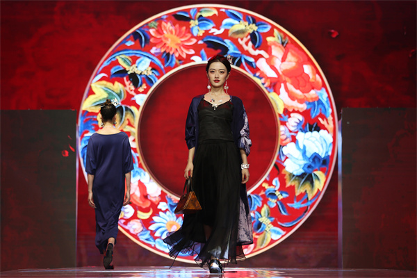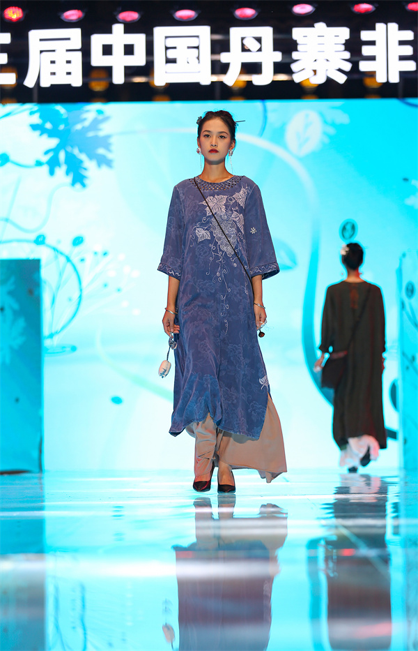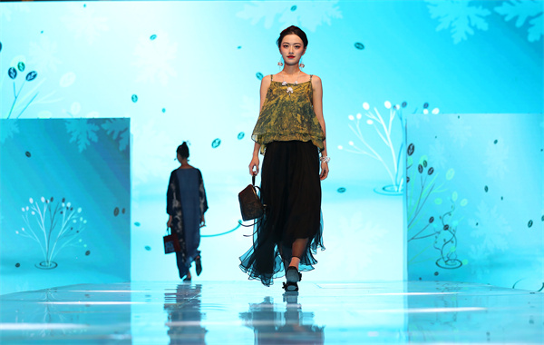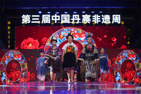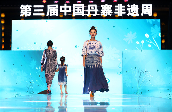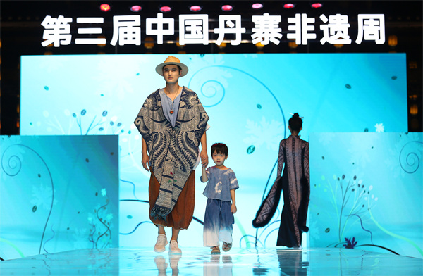 當晚,在貴州省黔東南苗族侗族自治州丹寨萬達小鎮舉辦以“非遺·在時尚中閃光”為主題,以非遺“苗族蠟染”為元素設計的時尚服飾秀,專業模特身着蠟染文創服飾,在T&上為現場觀眾展示了傳統蠟染和現代設計相結合的時尚魅力。